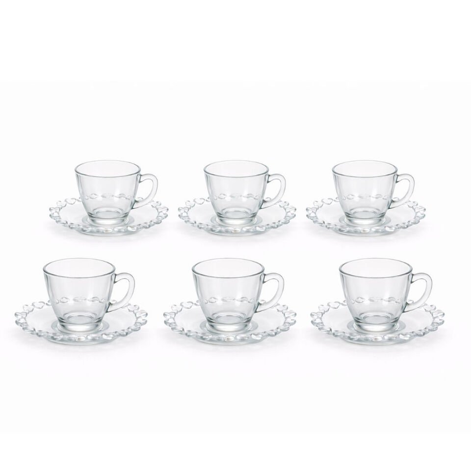6’lı Kalpli Cam Kahve & Çay Fincan Seti | 100 ml Şık Sunum Takımı
