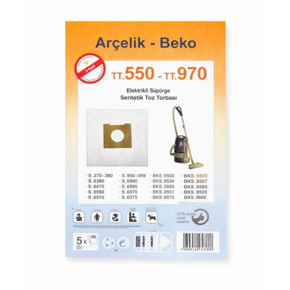 Arçelik – Beko TT550 / TT970 Uyumlu 3 Katlı Sentetik Süpürge Toz Torbası (5’li Paket)