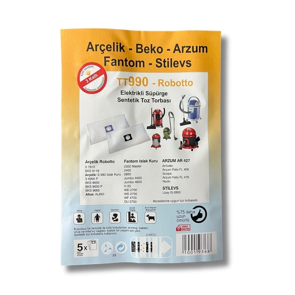 Arçelik Beko TT990 Uyumlu Elektrikli Süpürge Toz Torbası