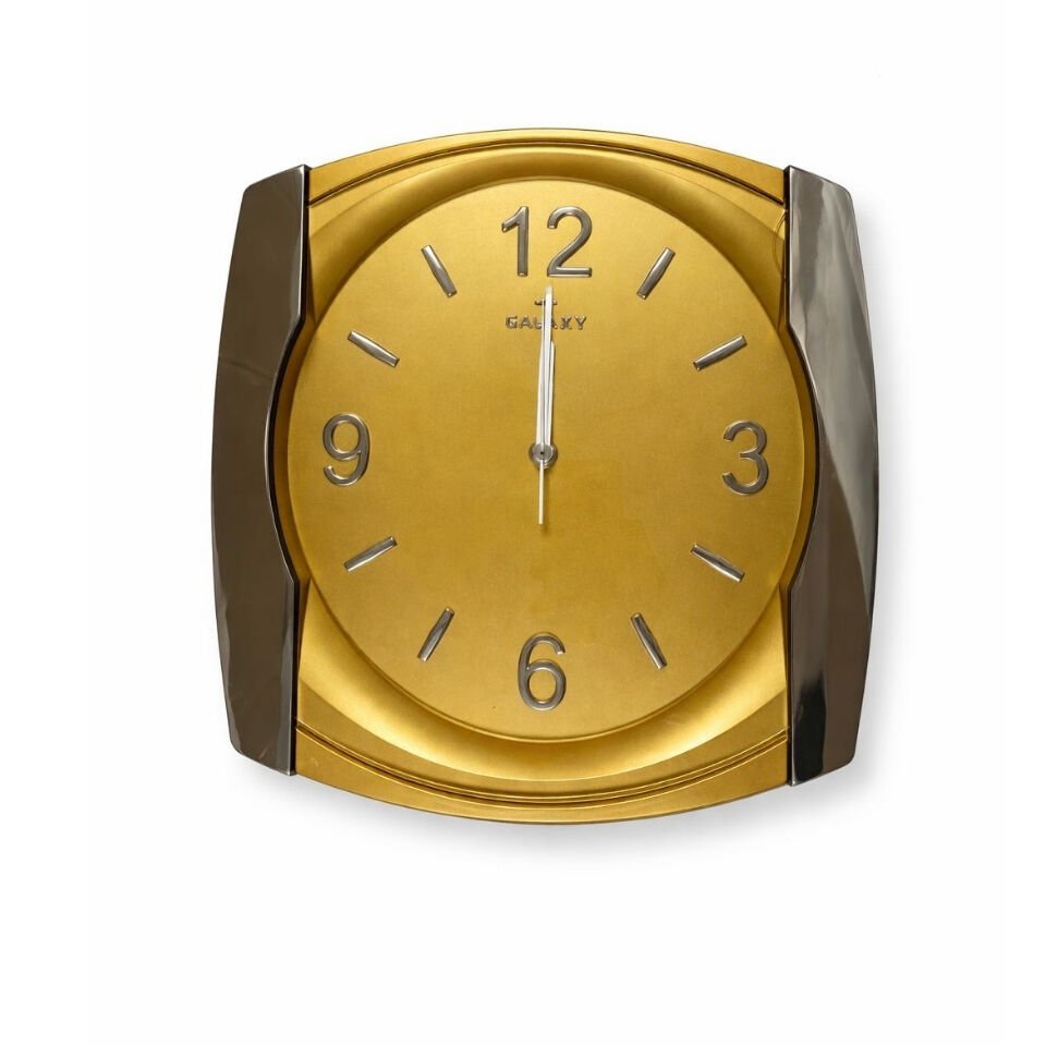 Göz alıcı altın rengi ve modern çizgileriyle Galaxy Duvar Saati, yaşam alanlarınıza zarif ve güçlü bir hava katar. Salon, oturma odası, ofis ve iş yerleri için şık bir tamamlayıcı dekor ürünüdür.