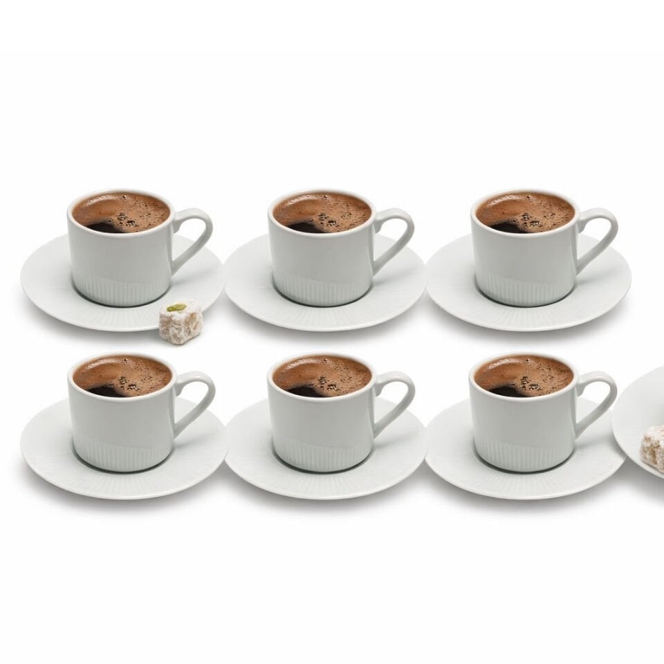 Kütahya Porselen 6 Kişilik Porselen Kahve Fincan Takımı – Modern Beyaz, Zarif Sunum Seti