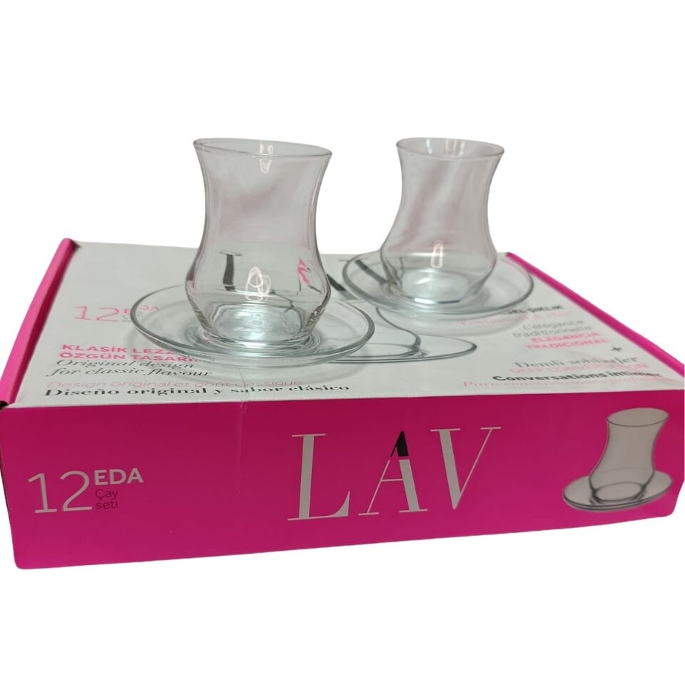 LAV Eda Cam Çay Seti 6 Kişilik 170 ml (6 Çay Bardağı, 6 Çay Tabağı)