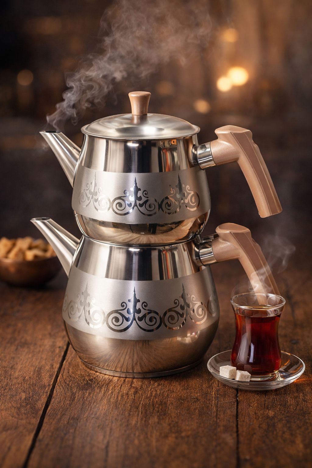 Papatyam Burcu Model Orta Boy Satenli Çaydanlık, zarif desenli saten yüzeyi ve modern tasarımı ile mutfağınıza şıklık katar. Günlük aile kullanımı için ideal hacme sahiptir.