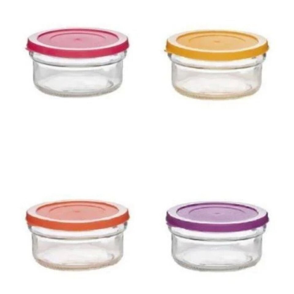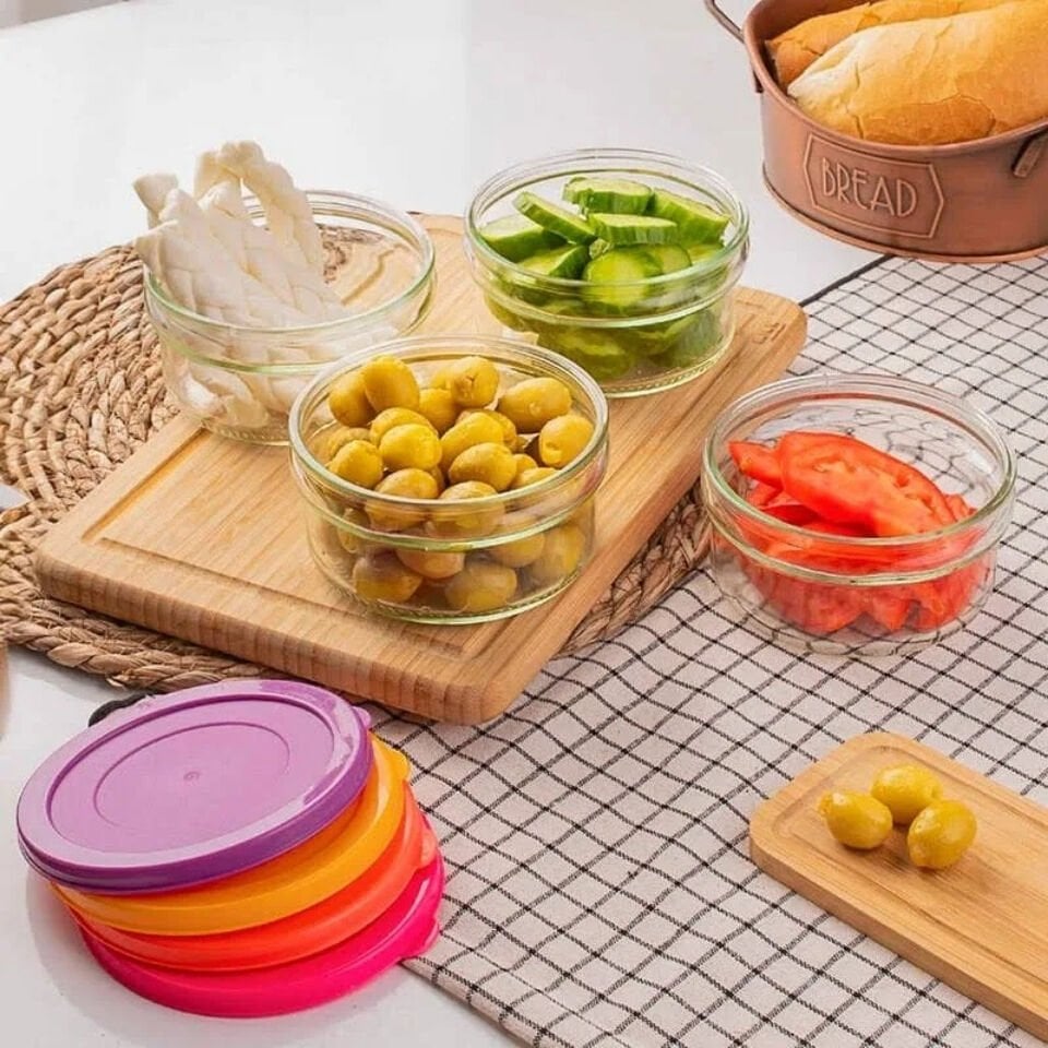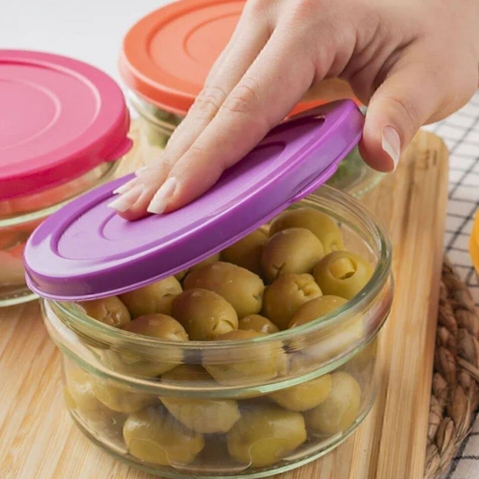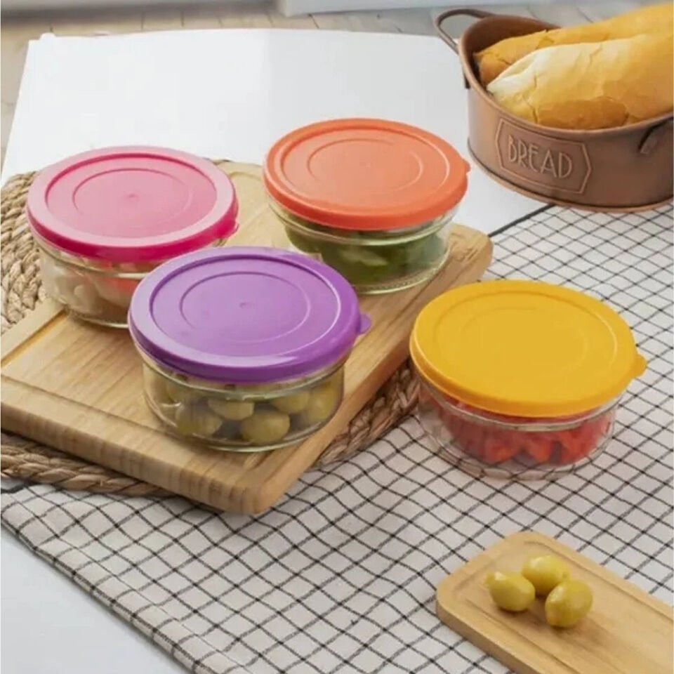 Paşabahçe Zuri 4 Lü Kahvaltılık Reçellik Çerezlik Renkli Kapaklı Cam Kase Saklama Kabı 400cc