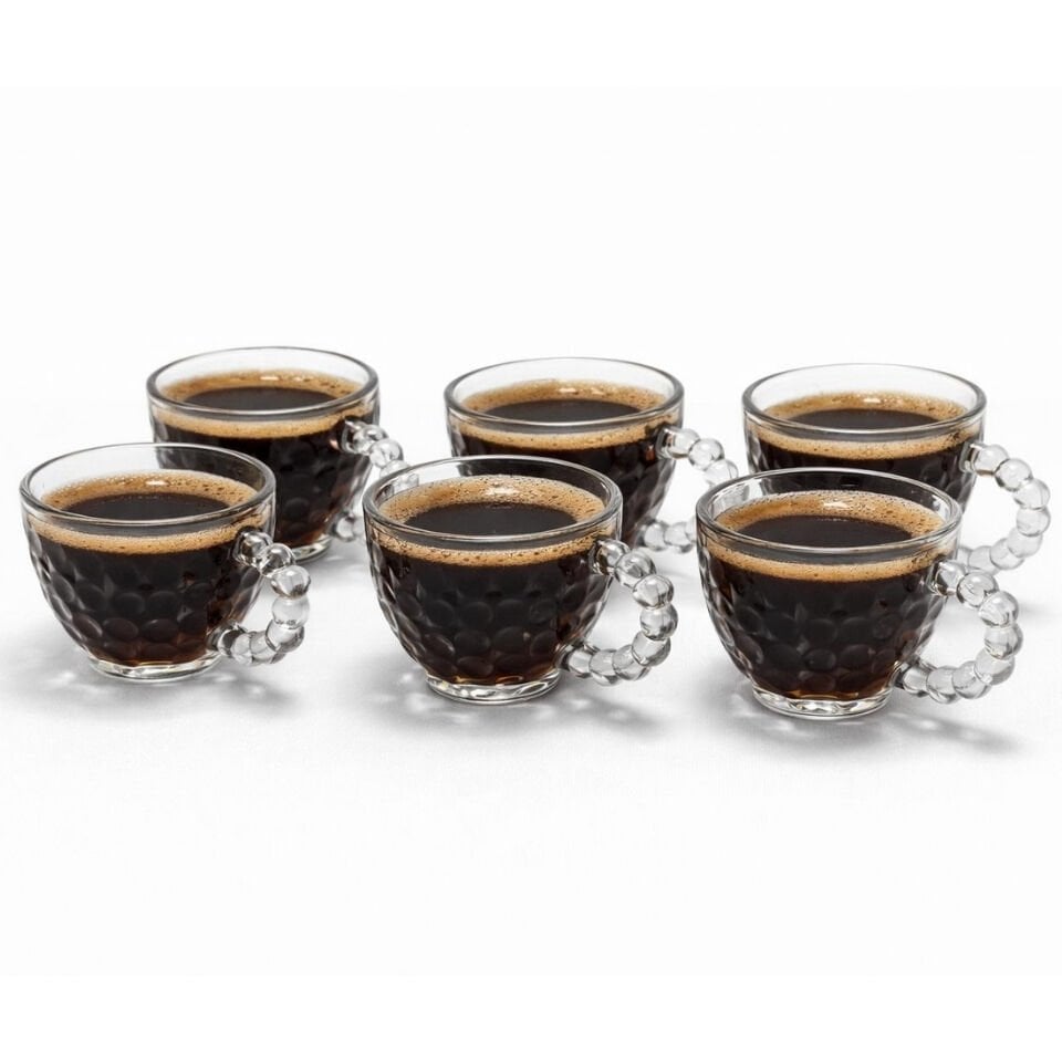 Rayan Cherry Coffee Cam Kahve Fincanı Seti 6’lı – 80 ml Boncuk Kulplu (RYG8072)