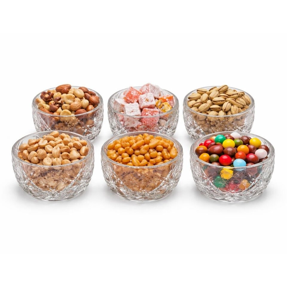 Rayan Rio Bowl 6’lı Cam Kase Seti – 150 ML, Kristal Desenli Şık Sunum Kaseleri