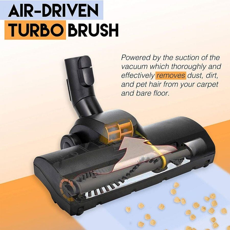 - Başlığın iç kısmında yer alan çark sistemi süpürgenizin vakum gücü desteği ile yere temas eden fırçaları döndürmeye başlar. Bu sayede turbo başlığın silindir fırçası yeri döverek halılarda daha iyi bir temizlik sağlar.